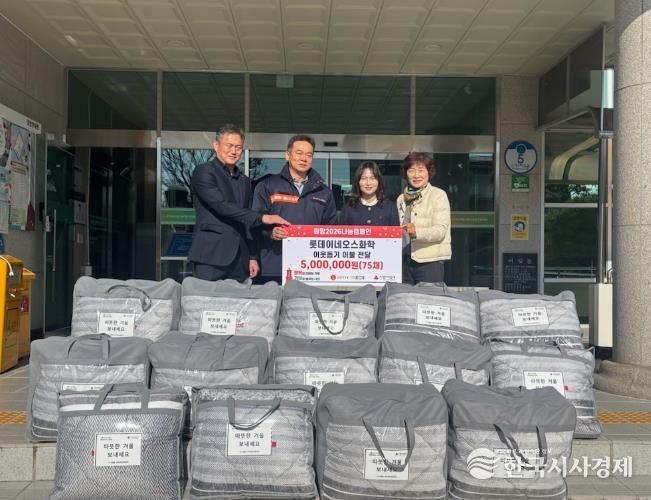 한국시사경제 울산취재본부 | 롯데이네오스화학(주)이 11일 울주군 청량읍 행정복지센터에 지역 내 어려운 이웃을 위한 겨울 이불 75개를 기부했다.