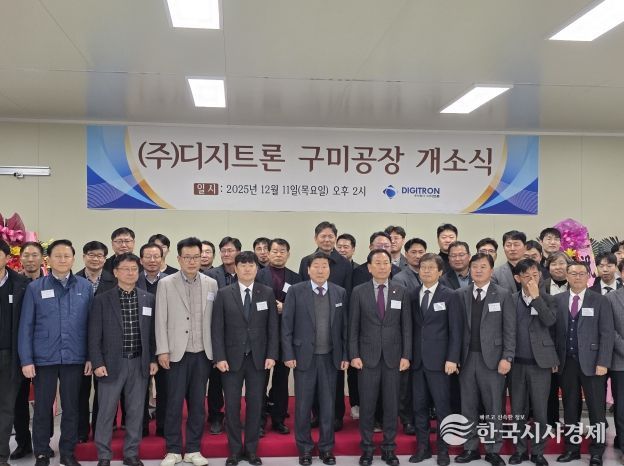 한국시사경제 경북취재본부 | ㈜디지트론(대표이사 이종국)은 12월 11일 구미국가산업단지 제1단지 내 신공장 개소식을 열었다. 개소식에는 이종국 대표이사를 비롯해 정성현 구미시 부시장, 시의원, 협력사 관계자, 임직원 등 120여명이 참석했다.