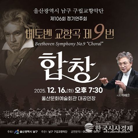 한국시사경제 울산취재본부 | 울산 남구 구립교향악단(지휘자 이태은)은 16일 오후 7시 30분, 울산문화예술회관 대공연장에서 ‘2025 송년음악회’를 열고 한 해를 마무리하는 품격 높은 클래식 무대를 선보인다.