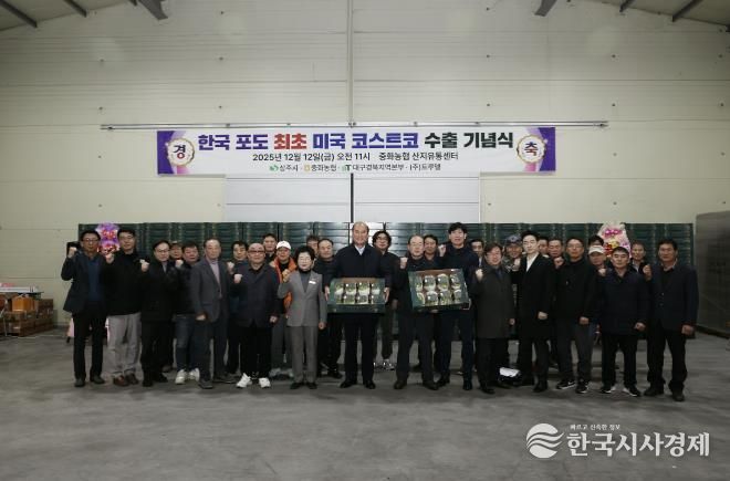 한국시사경제 경북취재본부 | 상주시 중화농협은 12월 12일 화서면 중화농협 농산물산지유통센터에서 ‘중화농협 샤인머스캣 미국 수출 선적식’을 개최했다.