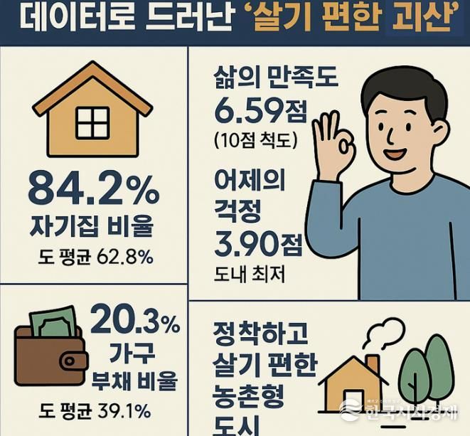 한국시사경제 충북취재본부 | 충북도의 2025년 사회조사에서 괴산군이 정서 안정·생활 만족·주거 안정성 분야에서 도내 최고 수준을 기록하며 ‘살기 좋은 괴산’을 다시 한번 입증했다.