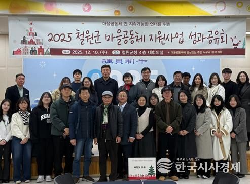 한국시사경제 권충언 기자 | 철원군은 지난 12월 10일 철원군청 4층 대회의실에서 '2025년 철원군 마을공동체 성과공유회'를 열어 한 해 동안 추진된 마을공동체 활동의 성과를 주민들과 함께 공유하는 시간을 가졌다.