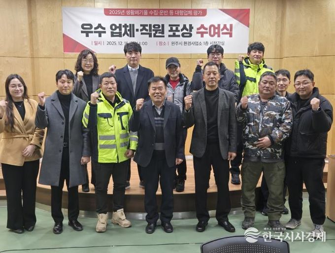 한국시사경제 권충언 기자 | 원주시는 12월 16일 '2025년 생활폐기물 수집ㆍ운반 대행업체 평가결과'에 따른 우수등급 업체 및 소속 직원을 대상으로 원주시장 상장 및 표창장을 수여한다.