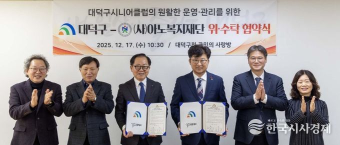 한국시사경제 대전취재본부 | 대전 대덕구는 17일 구청 구민의 사랑방에서 사단법인 아노복지재단과 대덕구 시니어클럽 위탁 운영 협약을 체결했다.