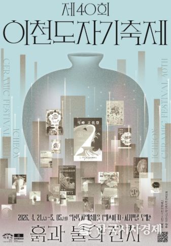 한국시사경제 이정이 기자 | 유네스코 창의도시이자 대한민국 대표 도자 도시인 이천시가 2026년 4월 24일부터 5월 5일까지 ‘흙과 불의 잔치’를 주제로 이천도자예술마을(예스파크)과 사기막골 도예촌 일원에서 열리는 제40회 이천도자기축제의 포스터 2종을 확정하고, 본격적인 홍보에 나선다.