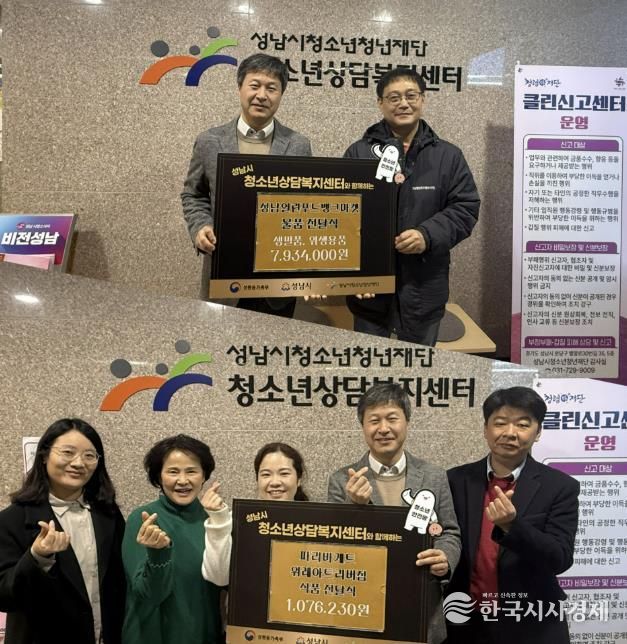 한국시사경제 경기취재본부 | 성남시청소년청년재단 성남시청소년상담복지센터는 12월 18일, 성남열린푸드뱅크마켓, 파리바게트 위례아트리버점과 물품 전달식을 진행했다고 밝혔다.