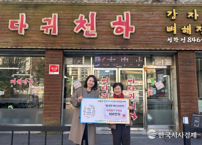 한국시사경제 경기북부취재본부 | 남양주시는 지난 18일 별내면 소재 ‘뼈다귀천하’가 지역 내 취약계층 지원을 위해 후원금 100만 원을 별내면 지역사회보장협의체에 기탁했다고 밝혔다.