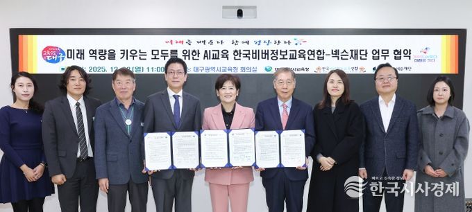 한국시사경제 대구취재본부 | 대구시교육청은 12월 22일 오전 11시, 시교육청 회의실에서 ‘한국비버정보교육연합(회장 김동윤)’,‘넥슨재단’과 인공지능 시대에 필요한 미래 핵심 인재 양성을 위한 3자 업무협약을 체결했다고 밝혔다.