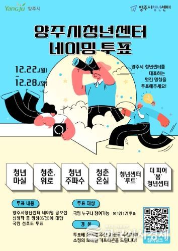한국시사경제 경기북부취재본부 | 양주시가 청년센터 이전 및 확대 운영을 앞두고 실시한 네이밍 공모전을 성공적으로 마무리하고, 국민투표를 통해 최종 명칭 선정을 위한 2차 심사를 진행한다.