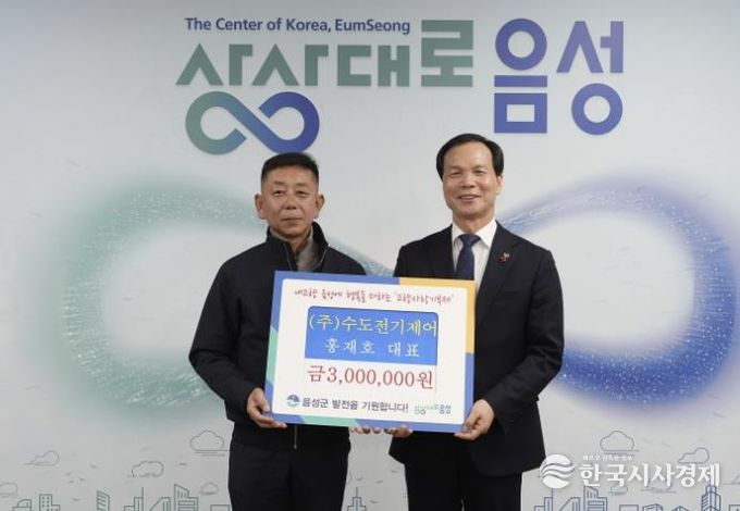 한국시사경제 오영주 기자 | ㈜수도전기제어 홍재호 대표가 지난 22일 음성군에 고향사랑기부금 300만 원을 전달했다.