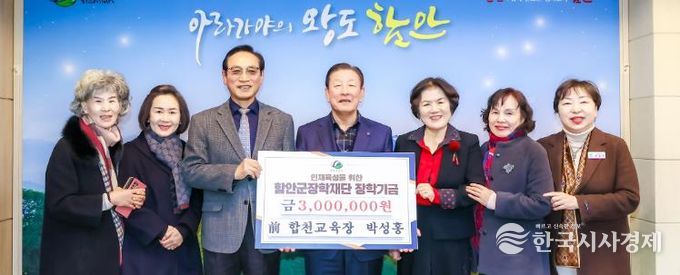 한국시사경제 경남취재본부 | 함안군은 법수면 황사리 출신의 박성홍 전 합천교육장이 고향 인재 육성을 위한 장학기금 300만 원을 기탁했다고 밝혔다.