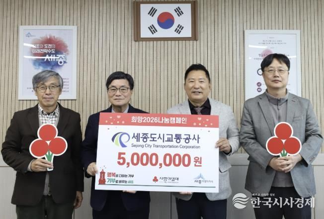 한국시사경제 세종취재분부 | 세종도시교통공사는 22일 세종사회복지공동모금회에 ‘희망2026 나눔캠페인’ 성금 500만 원을 기탁했다.