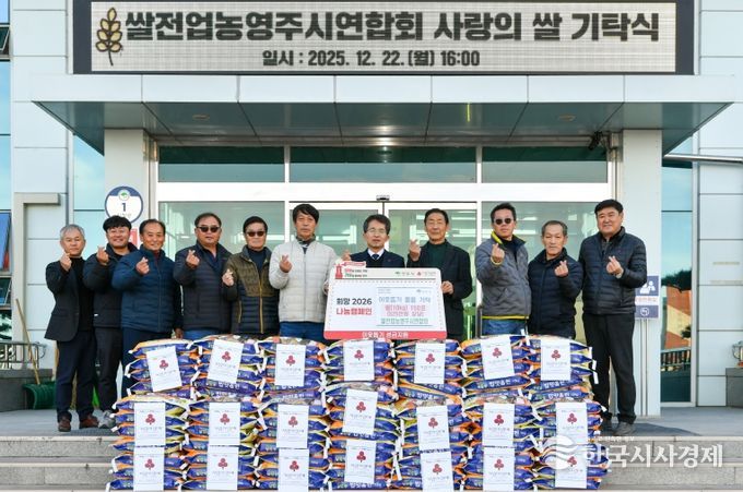 한국시사경제 경북취재본부 | (사)한국쌀전업농 영주시연합회(회장 송희찬)는 지난 22일 영주시청 전정에서 지역 취약계층을 위한 사랑의 쌀 1,500kg(10kg 150포, 500만 원 상당)을 기탁하며 연말 나눔의 온기를 더했다.