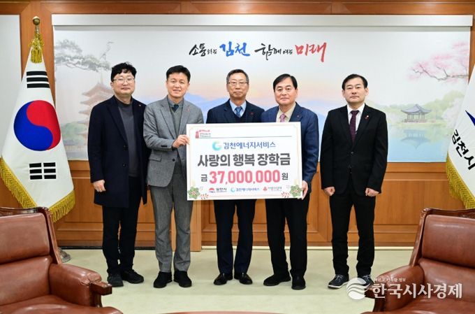 한국시사경제 권충언 기자 | 김천시는 지난 19일, 김천에너지서비스㈜(대표 박영진)로부터 관내 저소득 중·고등학생을 위한 장학금 3,700만 원을 전달받았다고 밝혔다.