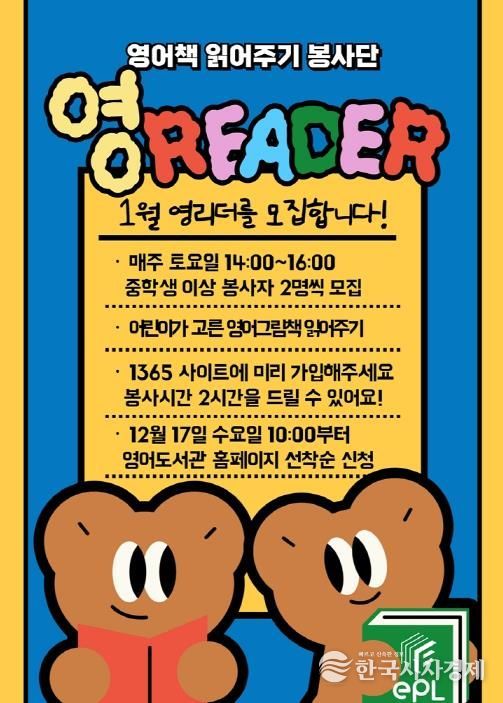 한국시사경제 경기북부취재본부 | 의정부영어도서관은 2026년 1월부터 영어책 읽어주기 봉사단 ‘영리더’가 참여하는 재능기부 프로그램 ‘Please Read a Book’을 운영한다.