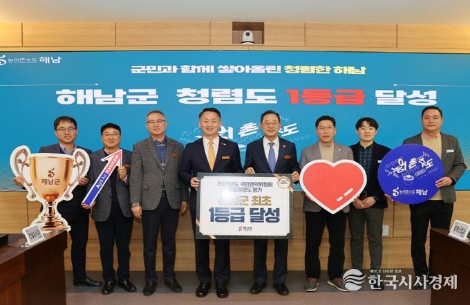 한국시사경제 권충현 기자 | 해남군이 국민권익위원회가 실시한 2025년 공공기관 종합 청렴도평가에서 최고 등급인 1등급을 달성했다. 2002년 공공기관 청렴도 평가 시행 이후 해남군 최초의 성과이다.
