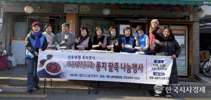 한국시사경제 경기취재본부 | 광명시 소하2동 지역사회보장협의체는 지난 22일 동지를 맞아 금강정사(대한불교조계종)와 사회적협동조합 행원과 함께 마을공유냉장고 ‘소이곳간’에서 ‘동지팥죽 나눔행사’를 진행했다.