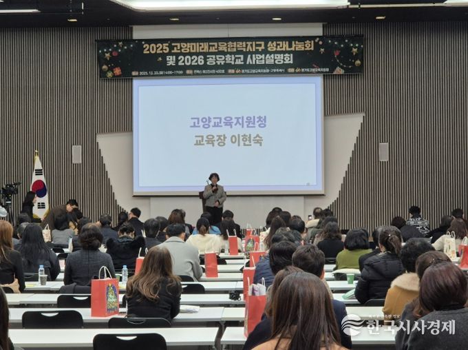 한국시사경제 경기북부취재본부 | 경기도고양교육지원청은 2025년 12월 23일 킨텍스 제2전시장(401~403호)에서‘2025 고양미래교육협력지구 성과나눔회 및 2026 공유학교 사업설명회’를 개최했다. 이날 행사에는 고양 관내 유·초·중·고 교사, 학교관리자, 학생, 협력 마을활동가 등 총 400여 명이 참석해 고양교육의 미래를 함께 모색했다.