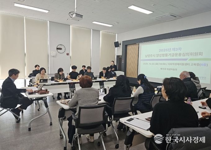 한국시사경제 경기북부취재본부 | 남양주시는 22일 남양주사회적경제지원센터에서 ‘2025년 제3차 남양주시 양성평등기금운용심의위원회 및 성과공유회’를 개최하고, 올해 추진한 양성평등기금 지원사업의 성과를 공유하며 2026년도 사업방향을 논의했다고 밝혔다.