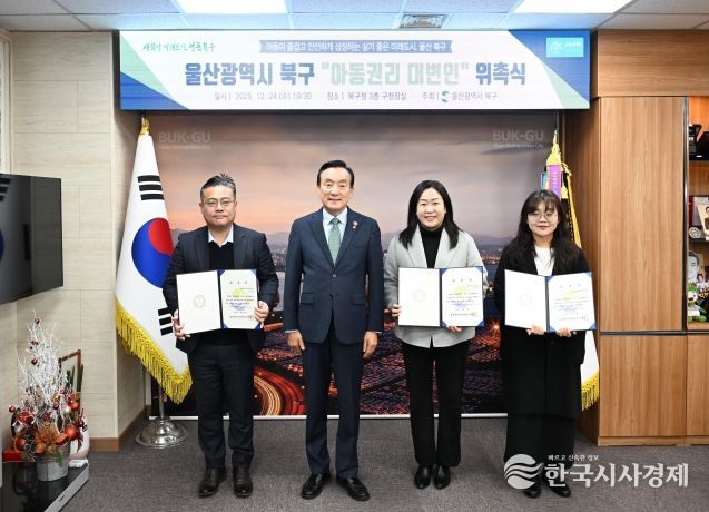 한국시사경제 문화팀 | 울산 북구는 24일 구청장실에서 아동권리 대변인 위촉식을 열고, 신규·연임 대변인 3명에게 위촉장을 전달했다.