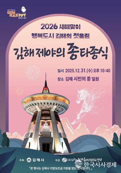 김해시 관계자는 “김해시민의 종은 가야의 역사와 시민의 염원이 담긴 상징적인 공간”이라며 “시민이 직접 참여해 희망과 화합의 메시지를 나누고 시민 모두에게 희망찬 새해의 첫 울림이 전해지길 바란다”고 밝혔다.
