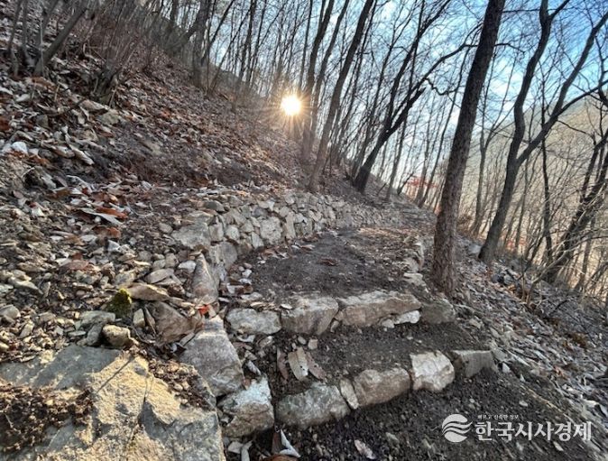 이번 사업에 약 2억 원이 투입됐으며 산책로 이용객들의 안전사고 예방과 자연 친화적 산책로 조성을 위해 노면을 고르게 정비하고 방향안내판, 안전로프난간, 돌계단, 돌배수로 등을 설치했다.