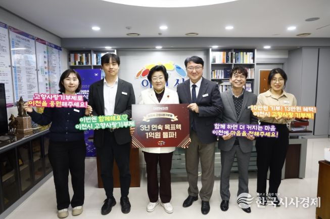 한국시사경제 기동취재팀 | 이천시는 고향사랑기부제 시행 이후 3년 연속 누적 기부금 1억 원을 돌파하며 제도의 안정적인 정착과 지속적인 성과를 이어가고 있다고 밝혔다.