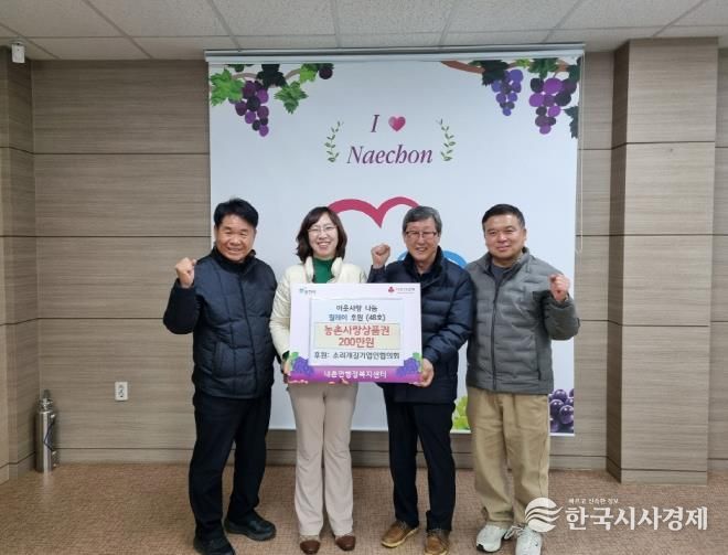 한국시사경제 경기북부취재본부 | 포천시 내촌면 행정복지센터는 지난 24일 소리개길기업인협의회가 농촌사랑상품권 200만 원 상당을 경기 사회복지공동모금회에 기탁하며 ‘이웃사랑 나눔 릴레이 48호’에 동참했다고 밝혔다.