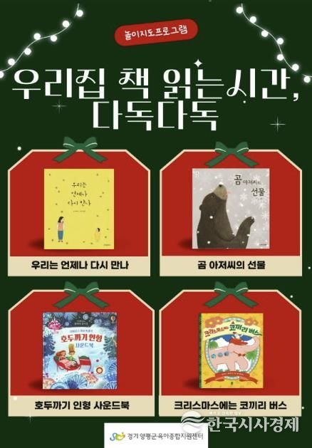 한국시사경제 기동취재팀 | 양평군육아종합지원센터는 연말을 맞아 관내 영유아 가정을 대상으로 가정에서 실천할 수 있는 부모교육과 놀이·독서 연계 프로그램을 운영했다.