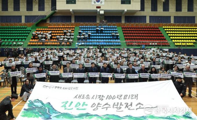 한국시사경제 김숙영 기자 | 진안군이 26일 오후 진안문예체육회관에서 군민 500여 명과 주요 내빈이 참석한 가운데 ‘진안양수발전소 유치 성공기원 범군민 결의대회’를 성황리에 마무리하고, 유치 성공에 대한 강력한 의지를 대내외에 선포했다.