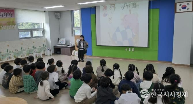 프로그램은 유아의 눈높이에 맞춰 센터에서 직접 개발한 동화책 읽어주기, 왕관·팔찌 등 만들기 활동, 노래 및 율동 배우기로 구성됐다. 교육을 마친 후에는 각 가정에 다다다 괜찮아 스티커북을 제공해 부모님과 함께 복습하는 시간을 가지도록 했다.