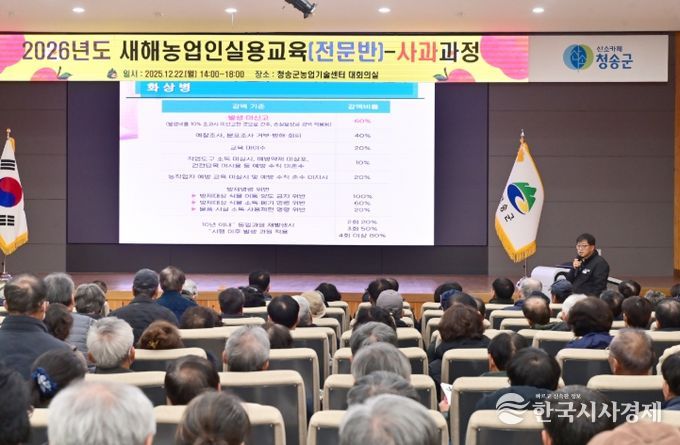 한국시사경제 이정이 기자 | 청송군은 지난 22일부터 24일까지 3일간 청송군농업기술센터 대회의실에서 실시한 ‘2026년도 새해농업인 실용교육(전문반)’을 성황리에 마무리했다고 밝혔다.