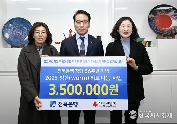 전상익 전북은행 부행장은 “지역사회의 한 구성원으로서 어려운 이웃과 따뜻한 마음을 나누고자 이번 기부를 마련했다”라며 “앞으로도 지역사회 발전과 소외계층 지원에 앞장서며 나눔의 가치를 실천하겠다”라고 말했다.