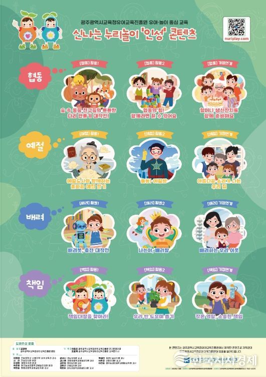 한국시사경제 광주취재본부 | 광주시교육청유아교육진흥원이 오는 30일 유치원·어린이집의 교육활동을 지원하기 위해 자체 개발한 ‘2025년 유아·놀이중심 교육 콘텐츠’를 배포했다.