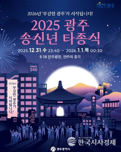 행사에는 강기정 시장을 비롯한 2025년 한 해 광주를 빛낸 시민대표 18명으로 구성된 타종 인사와 시민 등 3000여명이 참석할 예정이다.