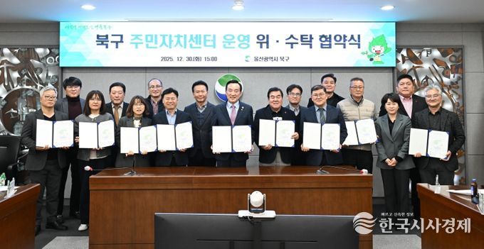 한국시사경제 울산취재본부 | 울산 북구는 30일 구청 상황실에서 8개 동 주민자치회와 주민자치센터 운영 위·수탁 협약을 체결했다.