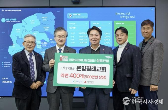 한국시사경제 충남취재본부 | 아산시는 온양침례교회가 연말을 맞아 지역 내 어려운 이웃을 위해 라면 400박스를 후원했다고 밝혔다.