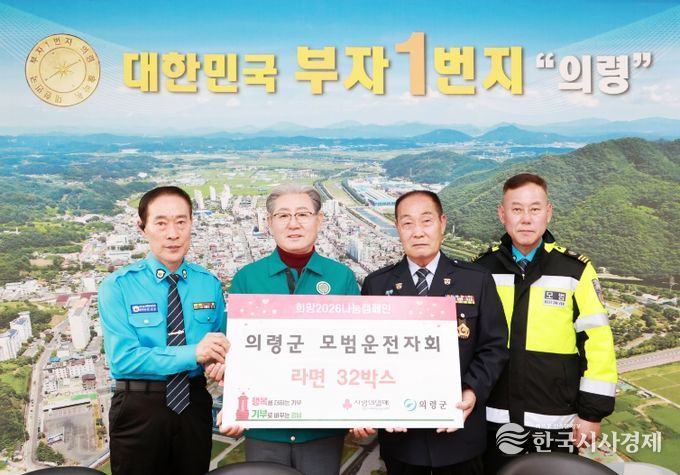 한국시사경제 윤광희 기자 | 의령군은 지난 30일, 연말 이웃돕기를 위해 의령군 모범운전자회가 라면 32박스(100만 원 상당)를 기탁했다고 밝혔다.