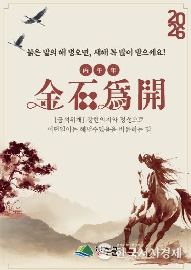 한국시사경제 전북취재본부 | 장수군은 2026년 병오년(丙午年) 새해를 맞아 군정 운영의 방향을 담은 신년 사자성어로 ‘금석위개(金石爲開)’를 선정했다.