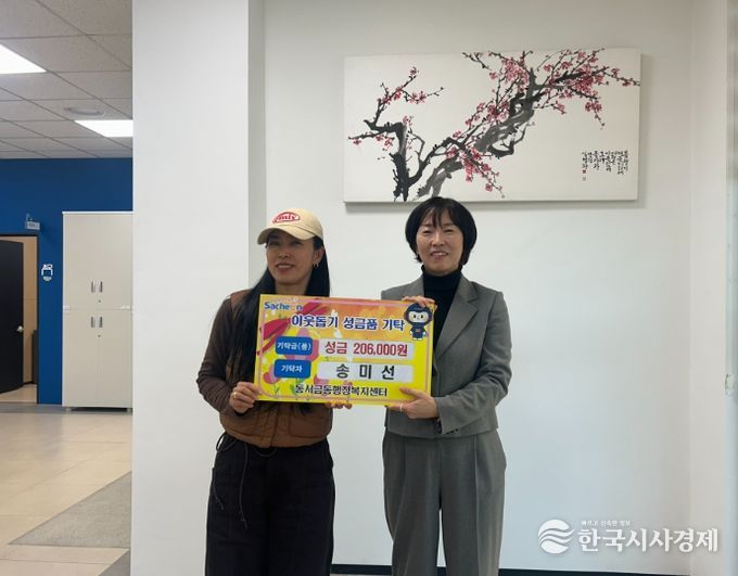 한국시사경제 윤광희 기자 | 써니잡화점(대표 송미선)은 지난 1월 2일 동서금동 행정복지센터를 방문해 관내 독거노인 및 취약계층을 위한 이웃돕기 성금 20만 6천 원을 기탁했다.