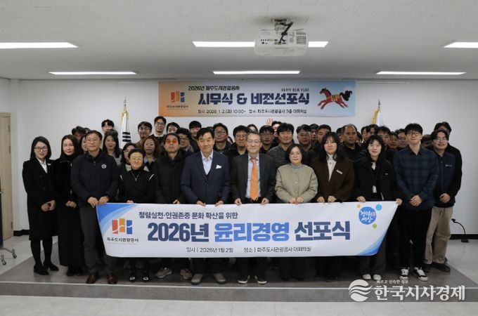 한국시사경제 경기북부취재본부 | 파주도시관광공사는 지난 1월 2일 본청 대회의실에서 ‘2026년 윤리경영 선포식’을 개최하여 청렴과 인권을 기반으로 한 윤리경영 실천 의지를 대내외에 공식 선언했다.