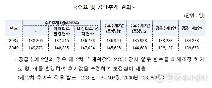 한편, 이날 보정심에 보고된 수급추계 결과는 다음과 같다.