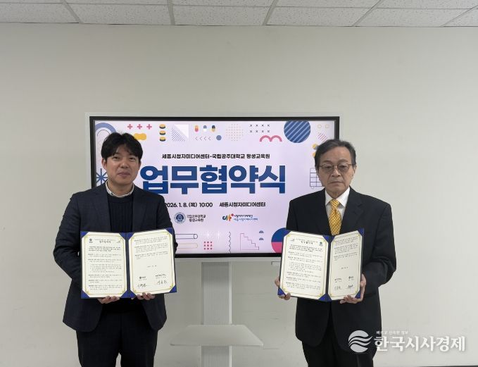 한국시사경제 세종취재분부 | 시청자미디어재단 세종시청자미디어센터와 국립공주대학교 평생교육원은 1월 8일 오전 10시, 세종시청자미디어센터에서 시민의 미디어 이해력 및 활용 역량 강화를 위한 업무협약(MOU)을 체결했다.