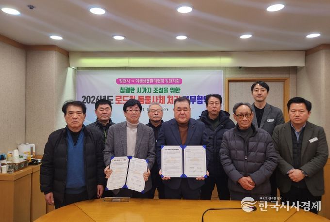 한국시사경제 권충언 기자 | 김천시는 지난 8일 ‘로드킬 동물사체 처리 상시기동반’운영을 위해 야생생물관리협회 김천지회와 로드킬 처리 업무협약을 체결했다.