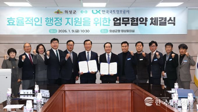 한국시사경제 이정이 기자 | 의성군은 9일 군청 본관 2층 영상회의실에서 LX한국국토정보공사(사장 어명소)와 ‘효율적인 행정지원을 위한 업무협약’을 체결했다고 밝혔다.
