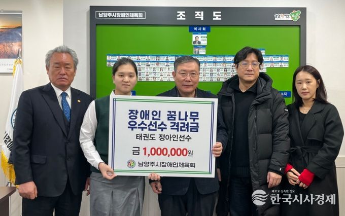 이날 행사에서 손기남 남양주시장애인체육회 수석부회장이 장애인태권도 국가대표 정아인 선수에게 직접 격려금을 전달했다. 전달식에는 윤성한 남양주시장애인태권도협회장을 비롯한 관계자와 선수 가족이 함께 참석해 의미를 더했다.