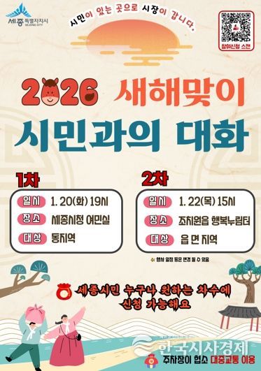 한국시사경제 세종취재분부 | 최민호 세종특별자치시장이 2026년 새해를 맞아 시민들의 목소리에 귀를 기울이고 시정 운영방향을 공유하기 위해 ‘새해맞이 시민과의 대화’를 개최한다.