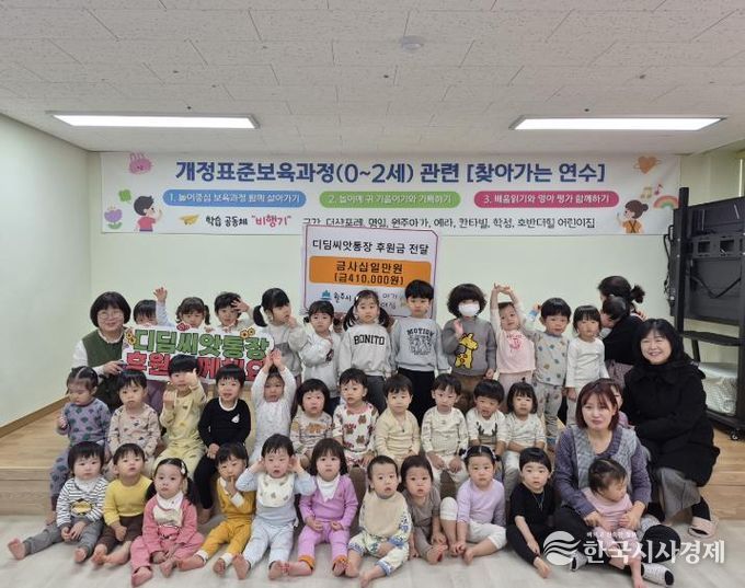 한국시사경제 권충언 기자 | 원주아가 어린이집은 지난 9일 원주시에 자립 아동 지원을 위한 디딤씨앗통장 후원금 41만 원을 전달했다.