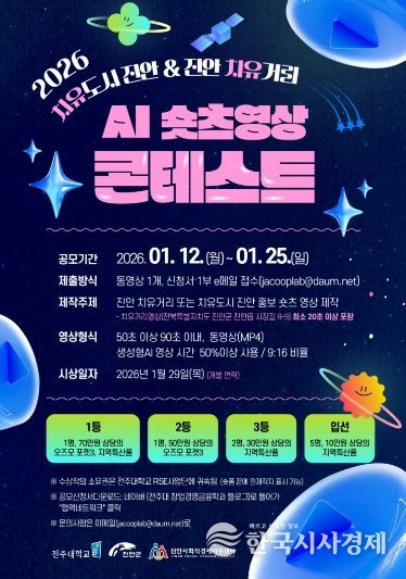 공모 기간은 2026년 1월 12일부터 1월 25일까지이며, 참가자는 ‘치유도시 진안’ 또는 ‘진안 치유거리’를 주제로 한 숏츠 영상을 제작해 이메일로 제출하면 된다.
