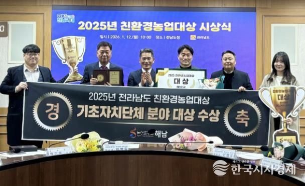 한국시사경제 권충현 기자 | 해남군이 전라남도‘2025년 친환경농업대상’평가에서 대상을 수상했다. 2년연속 대상 수상으로, 우리나라 친환경농업 선도 지자체의 위상을 확고히 했다. 해남군은 상사업비 8,000만원도 확보했다.